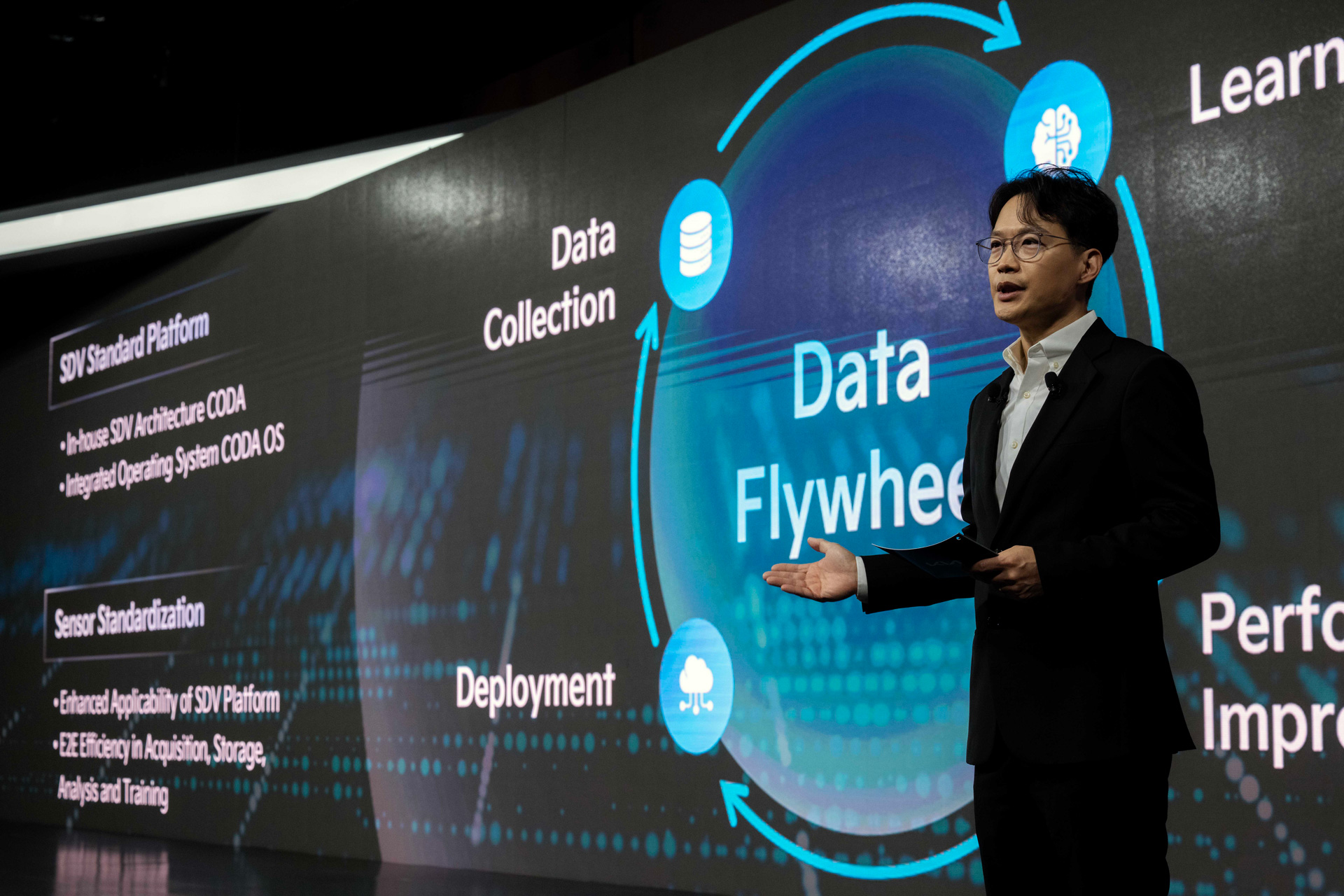 Ca răspuns, Hyundai Motor Group a adoptat standardizarea senzorilor ca prioritate strategică fundamentală. Bazându-se pe parteneriatul său cu NVIDIA, Grupul stabilește un cadru de tip „Data Union” și valorifică volumul său anual de vânzări globale de câteva milioane de vehicule pentru a acumula date la scară largă despre condusul în lumea reală. Prin această abordare, Hyundai Motor Group își propune să stabilească o abordare „Data Flywheel”, permițând un ciclu continuu de acumulare de date, învățare, îmbunătățire a performanței și implementare în produse.